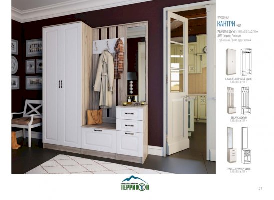 Модульная прихожая Кантри (Террикон) - за 34 722 руб. в Стерлитамаке. Купите на сайте sterlitamak.onlinemarketmebeli.ru или по телефону 8(800)505-30-63 уже сегодня! Уточнить наличие, комплектацию, актуальную цену можно бесплатно у менеджера ежедневно. Закажите Модульная прихожая Кантри (Террикон) до конца акции! Доступна покупка в кредит, рассрочку. Доставим со склада или на заказ.