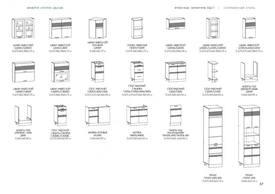 Кухня Успех изговаливается также в цветах серый/гобелен платина; серый/гобелен шампань; серый/синга жемчуг; серый/синга пурпур. Модули в этих цветовых решениях вы сможете найти в нашем интернет-магазине.