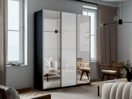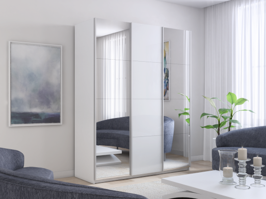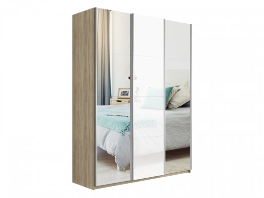 Шкаф-купе 3-х дверный Прайм Зеркало/Белое стекло/Зеркало 1800х2300х570 мм
