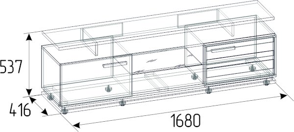 Длина ниши под телевизор, см 168