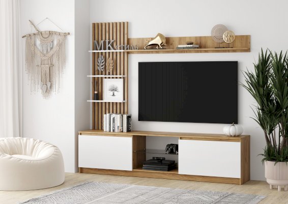 Дуб Крафт золотой (ЛДСП)/Белый глянец (МДФ)