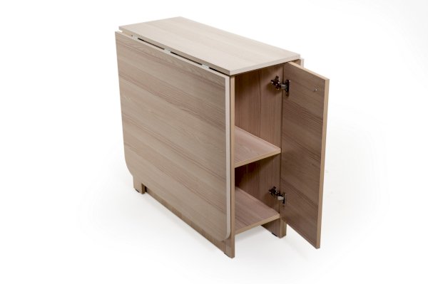 Преимуществом этого стола является наличие вместительных ящиков. В сложенном состоянии стол займёт совсем не много места и будет выполнять функцию комода или тумбы с ящиками.