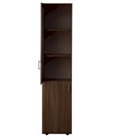 Закрытый шкаф для документов. За дверцами расположены вместительные полки. Стеклянная дверца, придает конструкции визуальную легкость.