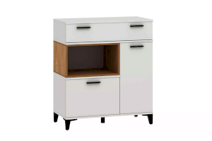 Удобная и функциональная тумба Bergen в современном скандинавском стиле является незаменимым элементом любой спальни и гостиной. Ярко выраженные элементы в виде контрастных вставок цвета дерева и черных ручек подойдут для светлых и темных интерьеров.