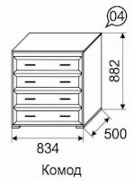 Элегантный и вместительный комод из коллекции «Афродита» отлично дополнит интерьер Вашей спальни. Используйте его в качестве туалетного столика или как дополнительное место для хранения вещей и принадлежностей. Четыре широких выдвижных ящика  позволят разместить как необходимую одежду или постельное белье, так и косметику и другие женские аксессуары. Утонченное оформление и удобные фигурные ручки с обеих сторон каждого ящика придадут интерьеру Вашей спальни изящный вид.