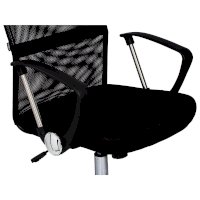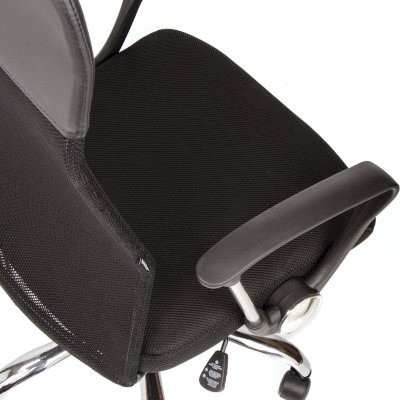 Спинка кресла выполнена из прочного сетчатого акрила. Материал обладает высокой воздухопроницаемостью, легко чистится, способен подстраиваться под физиологические изгибы спины, при этом сохраняет форму и не растягивается. Верхняя, наиболее подверженная износу, часть спинки изготовлена из экокожи. Помимо этого в области поясницы предусмотрена специальная вставка из эластичной ленты для дополнительной поддержки спины.