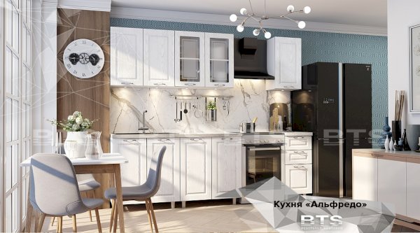 Модульная система "Альфредо" — это идеальный баланс современности и нестареющей классики. Подчеркнет настроение современного классического стиля, скандинавского и арт-деко. Декор F11 - это чистота и свет Вашего интерьера в отражении белого матового цвета, это идеальное по своей комбинаторности с другими палитрами цветовое решение. Декор F14- это спокойствие и сдержанность в бледно-оливковых оттенках, это теплота и уют Вашего интерьера. Декор F13 — это благородство серебра с теплыми нотами, это нежность и утонченность, отражающая безупречный вкус Вашего выбора. Четкие и лаконичные линии фрезеровки оттенены различными цветовыми решениями декора. Березовый спил под эмалью создает эффект крашеного дерева, придающего кухне атмосферу слияния с природой. Легкость и невесомость интерьеру Вашей кухни придает дизайн створок со стеклом, в декоре которого используется пескоструйная обработка. Дизайн рисунка стекла повторяет рисунок фрезеровки, тем самым объединяя разные текстуры в единое целое. Витражи верхних шкафчиков создают эффект аристократичности.