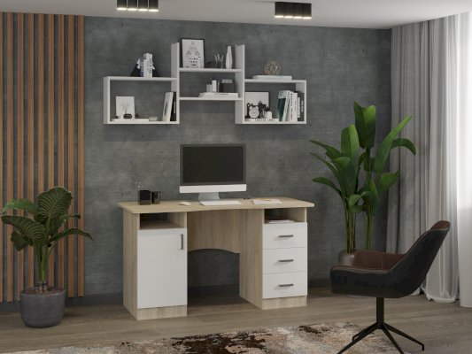 Полка прекрасно подходит для полноценной обстановки рабочего места, гостиной, детской. Конструкция выполнена в виде трех вместительных полок, которые находятся на различной высоте. Такую модель можно использовать для рабочих материалов и предметов декора, расширяя полезное пространство.