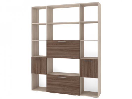 Применение задней стенки из ЛДСП (в ячейках с фасадами) позволяет использовать данный стеллаж для зонирования пространства (чтобы предотвратить опрокидывание, необходимо обеспечить крепление стеллажа к стене).