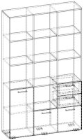 Применение задней стенки из ЛДСП (в ячейках с ящиками и фасадами) позволяет использовать данный стеллаж для зонирования пространства (чтобы предотвратить опрокидывание, необходимо обеспечить крепление стеллажа к стене).