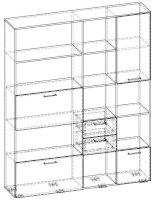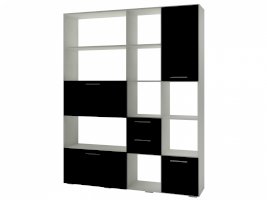 Применение задней стенки из ЛДСП (в ячейках с ящиками и фасадами) позволяет использовать данный стеллаж для зонирования пространства (чтобы предотвратить опрокидывание, необходимо обеспечить крепление стеллажа к стене).