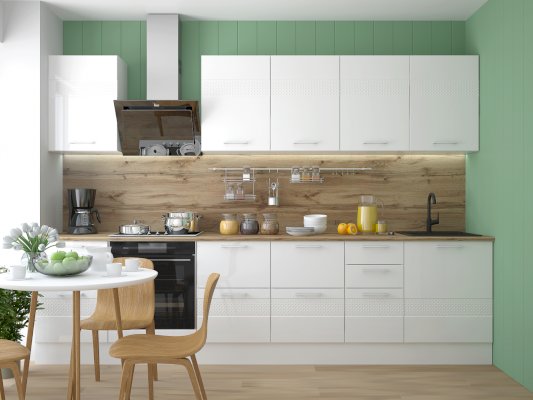 Корпус и фасад поставляются в отдельных упаковках, что дает возможность комбинировать в одной кухне разные фасады.