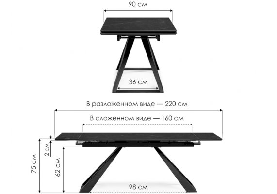 Длина разложенного столика, мм 2200